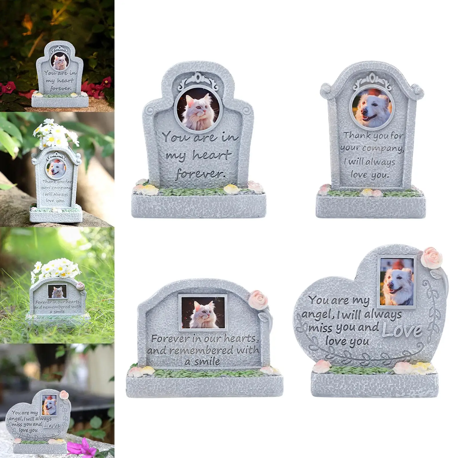 Honor your beloved pet with this beautifully crafted resin memorial headstone. Weatherproof and durable, it's perfect for placing in your garden, lawn, or patio. Each design features heartfelt details to celebrate the memory of a cherished companion. Ideal for cats, dogs, or other small pets.